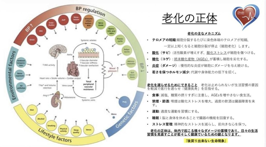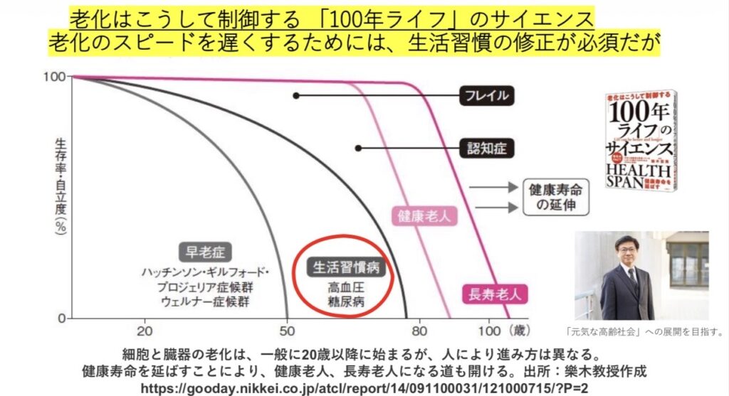 生活習慣病と老化は一体のものであり、日々の生活習慣を見直すことで健康寿命を延ばし、病気のリスクを減らす上で非常に重要です。